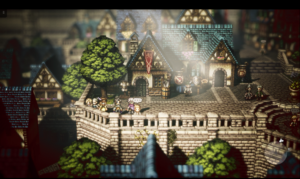 大きな特徴として、「HD-2D」と呼ばれるグラフィック技術が初めて採用されたゲームであることが挙げられます。「HD-2D」は、ドット絵と3DCGが組み合わさった表現技法で、ドット絵の古き良き雰囲気を残しつつ美麗なグラフィックを楽しむことができます。例えば本作では、キャラクターはドット絵で、背景は3Dで立体的に描かれています。