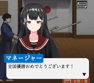 このゲームについて説明を書こうと思った。しかし非常に困ったことにこのゲームにはちゃんとしたチュートリアルが存在しない。このゲームの目標は元強豪校の剣道部を復権させることらしい。部員が毎年5人ずつ入ってくるので、そいつらを育成して5人団体戦の剣道の大会で優勝することが当面の目標である。育成の仕方は重要な要素まですべて切り捨てたパワプロといった感じである。5つのパラメータ筋、速、持、精、経をそれぞれ対応する練習をすることで、ゲーム内で1週間たち、部員全体のステータスを上げることができる。そして年2回開催される大会にて結果を出すことで報酬がもらえ、それを使ってまた新しい部員を育成して…。これがゲーム全体の流れである。そしてこのゲームのやりこみ要素として「勝ち抜き戦」が存在する。これは自分が育成したキャラクターを一体選び、一日に一回、勝ち抜き戦を行い、その連勝数をプレイヤー同士で比較するというもので、こちらがメインのコンテンツになっている。
